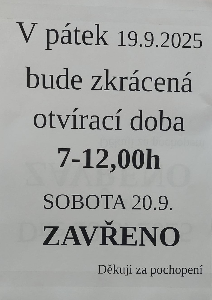 dovolujeme si předat informaci o omezení pracovní doby v naší prodejně COOP/KONZUM.