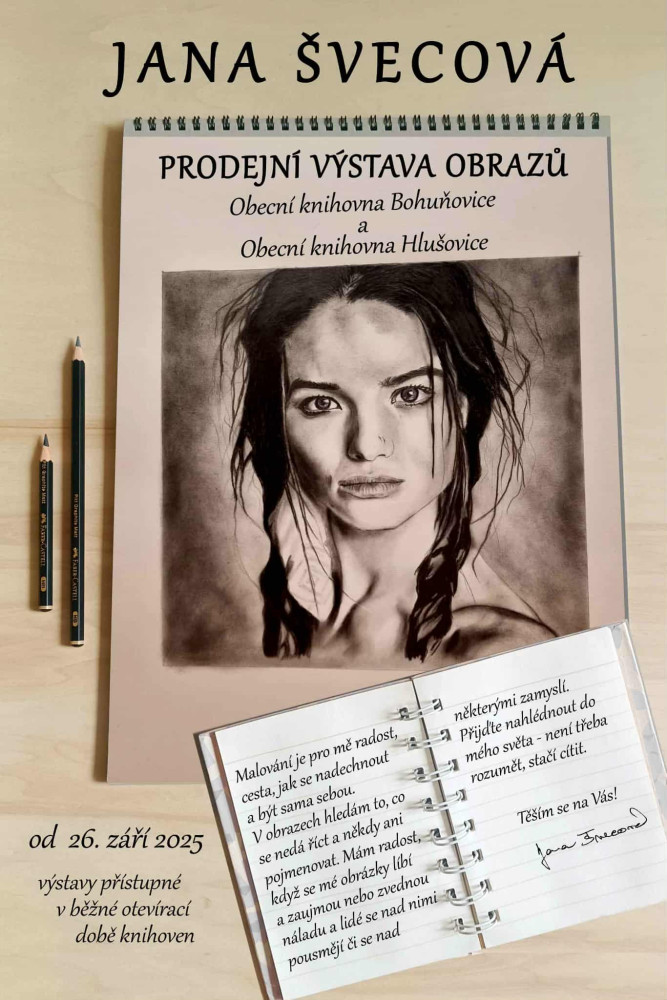 Knihovna Hlušovice zve všechny občany na výstavu krásných obrazů paní Jany Švecové.