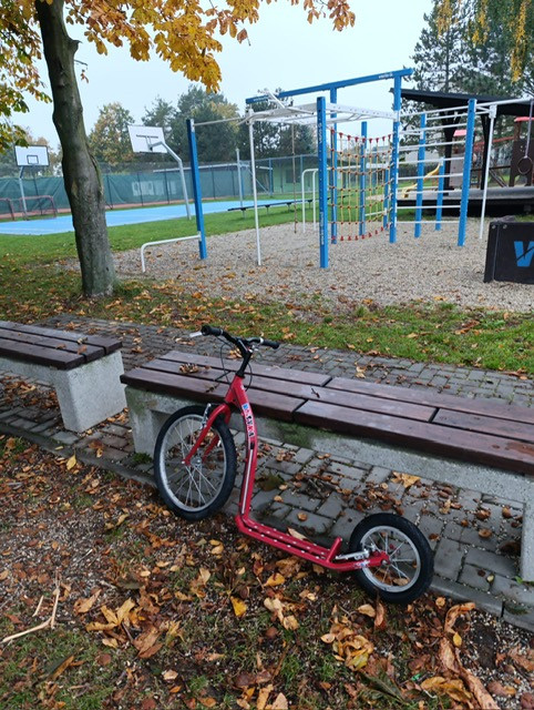 zaznamenali jsme na místním hřišti zřejmě zapomenutou červenou koloběžku značky Kostka. Nachází se zde již od pondělí. Majiteli doporučujeme co nejdříve vyzvednout.